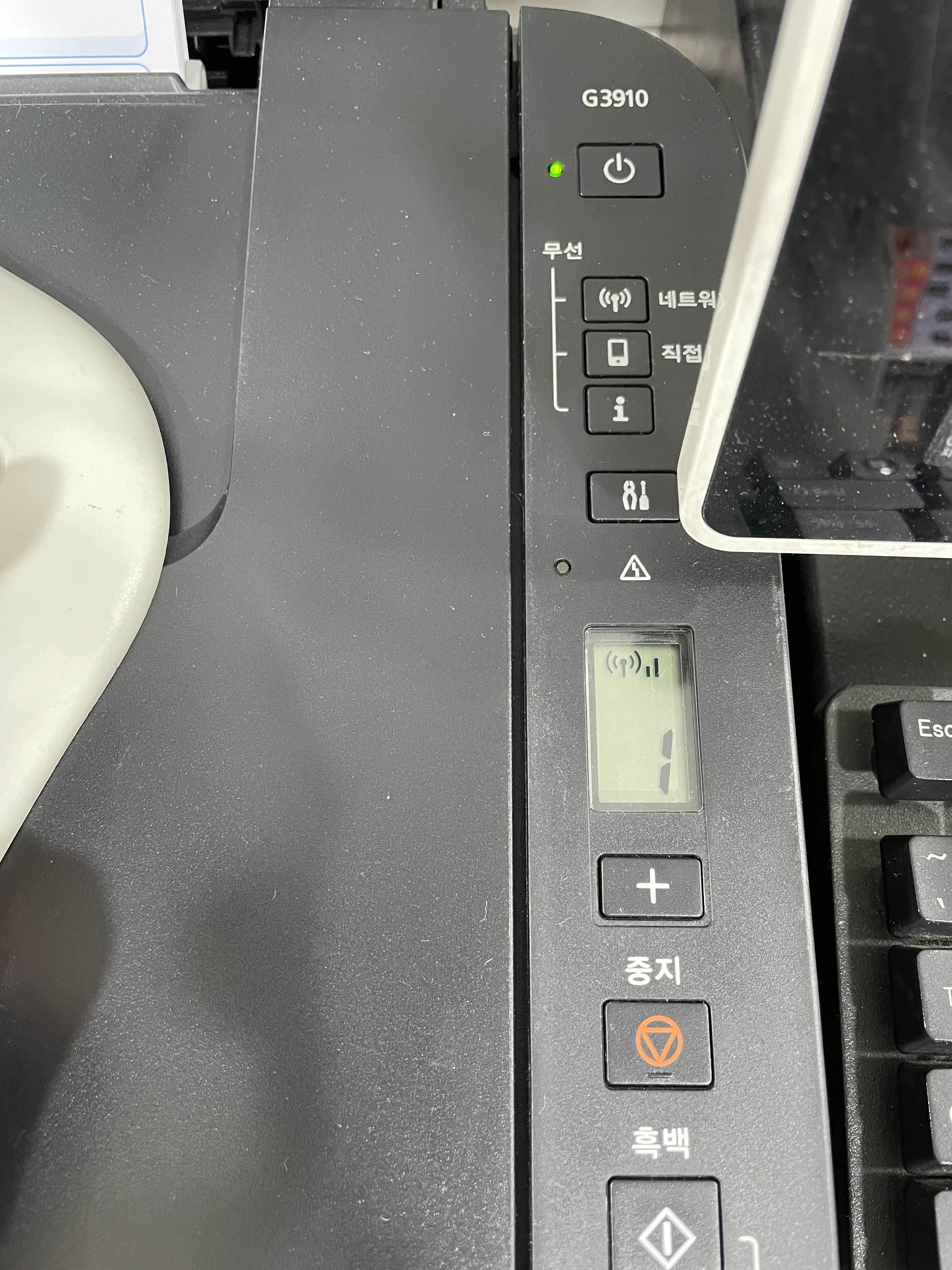일단 오늘은 캐논 G3910을 급한대로 사용해야하니 압소바를 주문하고 기다리는 중 사용을 위해 급한분을 끄기 위해 에러코드 삭제를 합니다. 에러가 발생하면 프린터 액정창에 <P-0-7>이라는 letter가 순서대로 깜빡이며 나타납니다. 전원버튼의 녹색 불과 경고등의 주황색이 번갈아 점등하고 있는 상태일겁니다.
